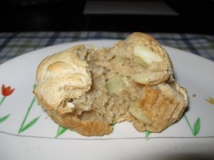 I had 2 apples in my fruit basket that needed to be used, and I found this easy muffin recipe. All of the ingredients were on hand, so I decided to do some baking. I liked the big chunks of apple, but the muffin was not as sweet as you might expect so you may want to add more sugar.