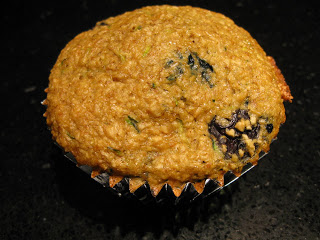 Combine egg, milk, applesauce, and vanilla in a small bowl. In a separate, large bowl, combine oat bran, flours, sugar, baking soda, and baking powder, and mix thoroughly. Gradually add the wet mixture to the dry mixture until thoroughly mixed. Stir in the zucchini and blueberries. Pour into 12 lightly sprayed muffin cups. Bake about 20 – 25 minutes at 350F.