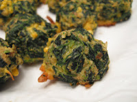 I brought these spinach bites to my cooking club as well, but they also lacked any strong flavor. The recipe overall has potential though, and next time I would use a much sharper cheese to see if that makes a difference.