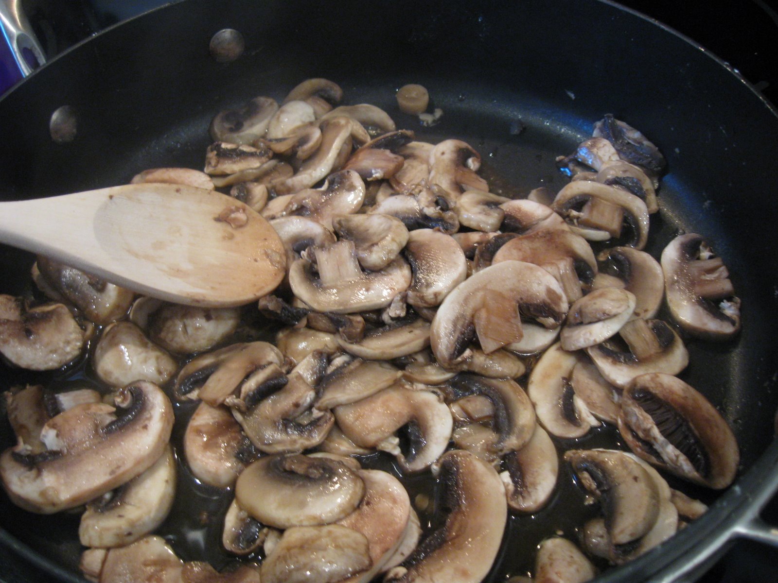 Then, she sliced up some mushrooms, and cooked those in a mix of melted butter and Marsala wine: