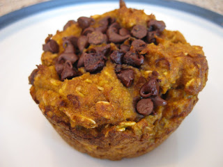 I was excited to use my newly purchased flax, and wanted to try this recipe from Angela at Oh She Glows. I substituted 3/4 c. canned pumpkin for the banana because, well, all the bananas had been used to make ice cream! My sister added the chocolate chips which was a nice touch.
