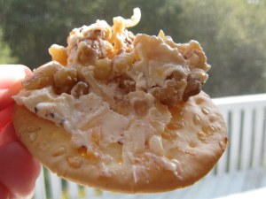 I am a big fan of Stonewall Kitchen products, but more on that in a future post. My sister made this appetizer for the weekend using Stonewall’s Farmhouse Chutney. The cheese ball was rolled in walnuts, in place of pecans. I generally think of cheese balls as a holiday appetizer, but it worked just as well here, on the cusp of fall.