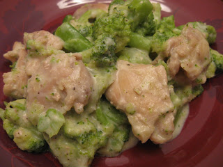 This was an easy weeknight dinner, using one of my favorite products, Laughing Cow Light. You could serve this over rice, pasta, or another grain.