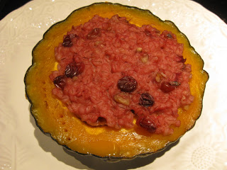 I was walking through the local produce market, and spotted a squash that was new to me. I had never heard of abobora, but I decided to give it a try. I was also in the mood to use fresh cranberries, and had some barley on hand.