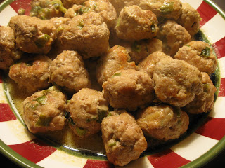 I was on the hunt for an appetizer meatball recipe last weekend. I could have gone retro and simmered beef meatballs in the crockpot, but instead I tried this Asian-themed recipe. As the title suggests, I used ground turkey instead of beef, and decided on ‘Thai’ because they are simmered in coconut milk. I made a few other changes to the recipe, skipping the leek and the garnish, and using red chili paste in place of the fresh chile pepper. They weren’t spicy at all though, the most dominant flavor was ginger. Next time, I might make the meatballs as a main dish, and serve the sauce over some rice noodles.
