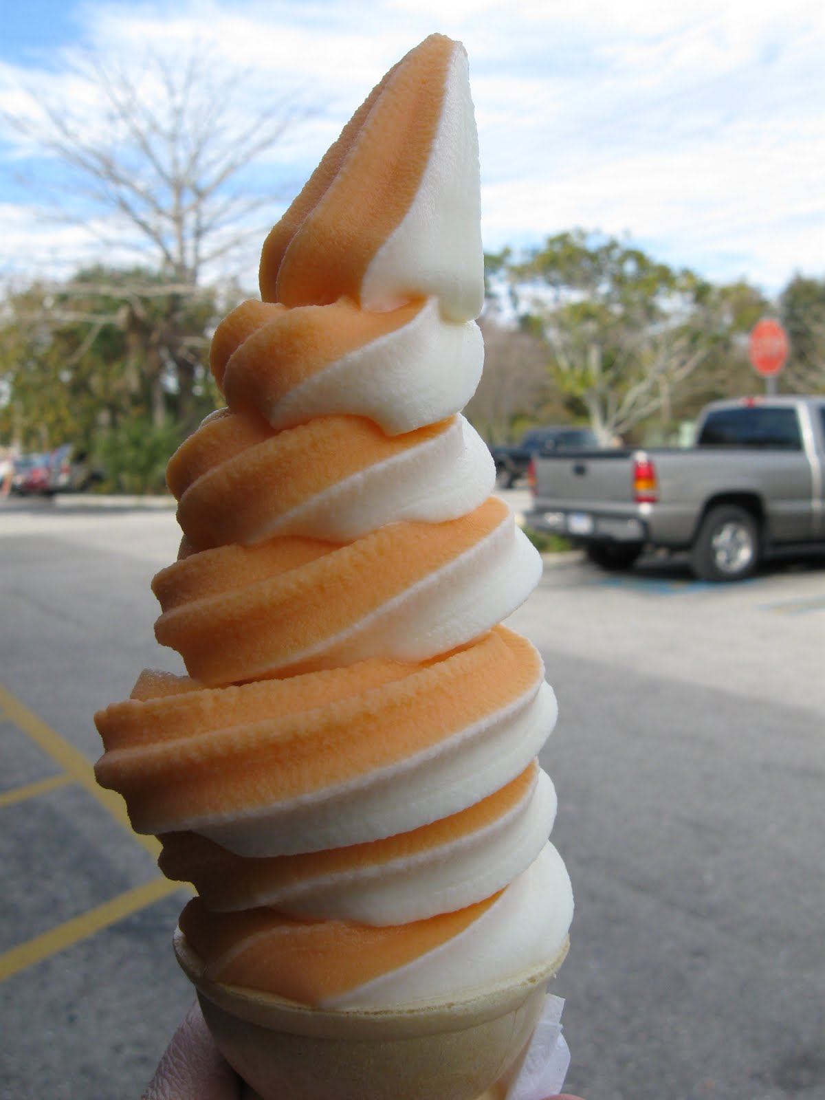 This year on vacation, my whole family took my nephew for his first visit to Nokomis Groves, a local citrus grove which has been growing oranges and grapefruit for over 60 years. This was really a flimsy excuse for the adults to go enjoy the orange ice cream. You can’t tour the grove itself, but there is a little store with freshly squeezed orange juice, piles and piles of oranges and grapefruit, and yes, their famous ice cream cone which is a classic twist of orange and vanilla.