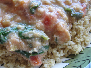 After my recent success with Chana Masala, I was anxious to try another Indian dish, and this is the very best curry recipe I’ve ever made. The red lentils, spinach, tomatoes, yogurt, and spices were perfect together. I substituted a 14 oz. can of diced tomatoes for the fresh, and skipped the cilantro and additional beans. Next time I will make it the exact same way, but serve it over basmati rice instead of whole wheat couscous. There’s no heat in this dish though, so if that’s what you like, go ahead and add some pepper.