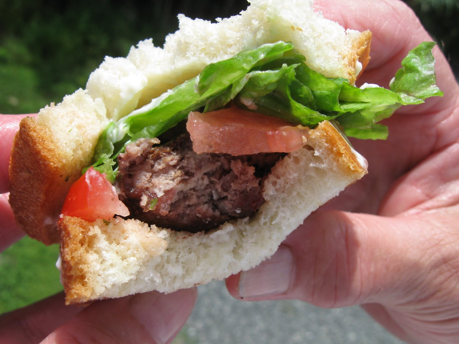 My Mom and I decided to get some ground beef to make hamburgers for the family. I shaped the meat into patties and set my Dad to work on the grill. I ate my burger plain, but my Mom dressed hers up with lettuce, tomato, and mayo.