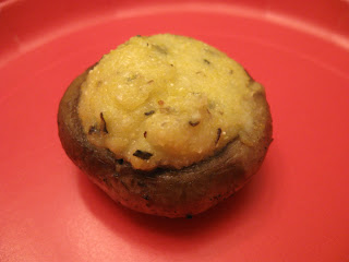 My other suggestion for Christmas Eve was polenta stuffed mushrooms. I know that sausage stuffing is perhaps more traditional, but as usual, I was looking for something different. There are a lot of recipe variations online, and I tried to combine the best of them. The end result was great and these were flying off the table when I realized I better grab one myself and snap a picture fast!