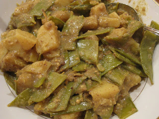 This dish was based on a recipe for Mild Coconut Tofu Curry. I wanted the curry to be flavorful, but not too spicy. Since we were already having shrimp and chicken, I skipped the tofu. One recipe review suggested adding pea pods, which ended up being great for color and variety.