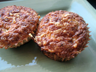 Coat a (12) muffin tin with cooking spray, and fill evenly with batter. Sprinkle with remaining 1/4 c. of Parmesan. Bake at 400F for 25-35 minutes.