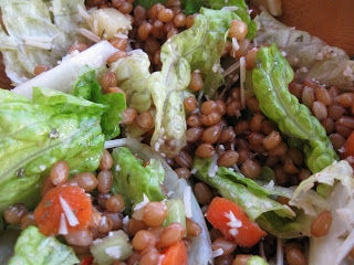 It all started when my friend Karla brought me fresh mint from her garden. Mint goes so well with feta, which I usually have on hand. Then, I bought spring peas at a local market known for good produce, and found this recipe which tied those ingredients together. But I was craving the crunch of wheat berries, so I used those instead of rice. I had some shrimp in the freezer, so after a quick defrost, I added them in. Finally, it needed some type of dressing, but I wanted to keep it light so I added some lemon juice. This recipe has so many different flavors and textures, I definitely enjoyed it.